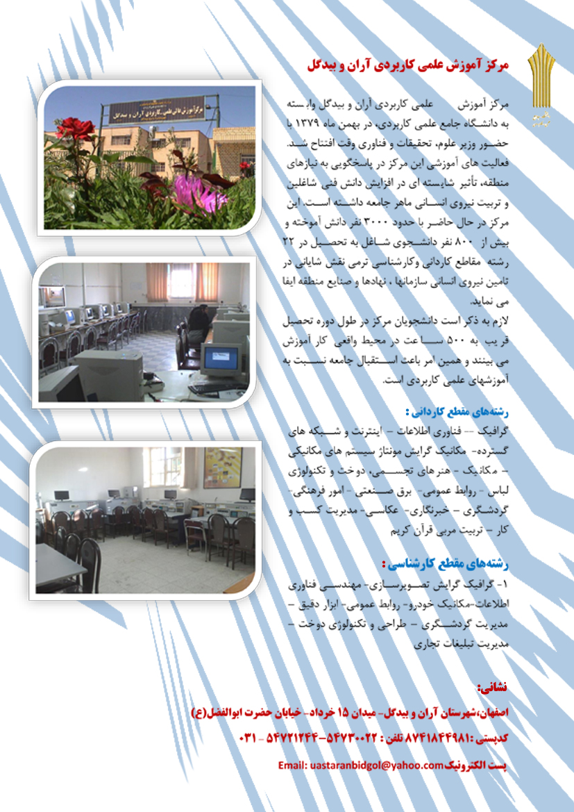 مرکز آموزش علمی - کاربردی آران و بیدگل ارسال به دیگران نام شما ایمیل شما ایمیل دریافتکننده ارسال انصراف