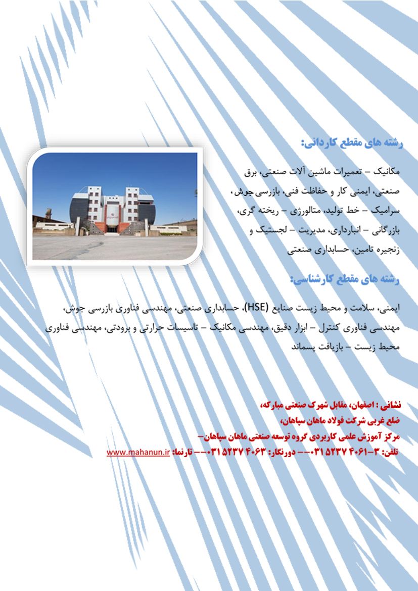 مرکز آموزش علمی - کاربردی گروه توسعه صنعتی ماهان سپاهان ارسال به دیگران نام شما ایمیل شما ایمیل دریافتکننده ارسال انصراف
