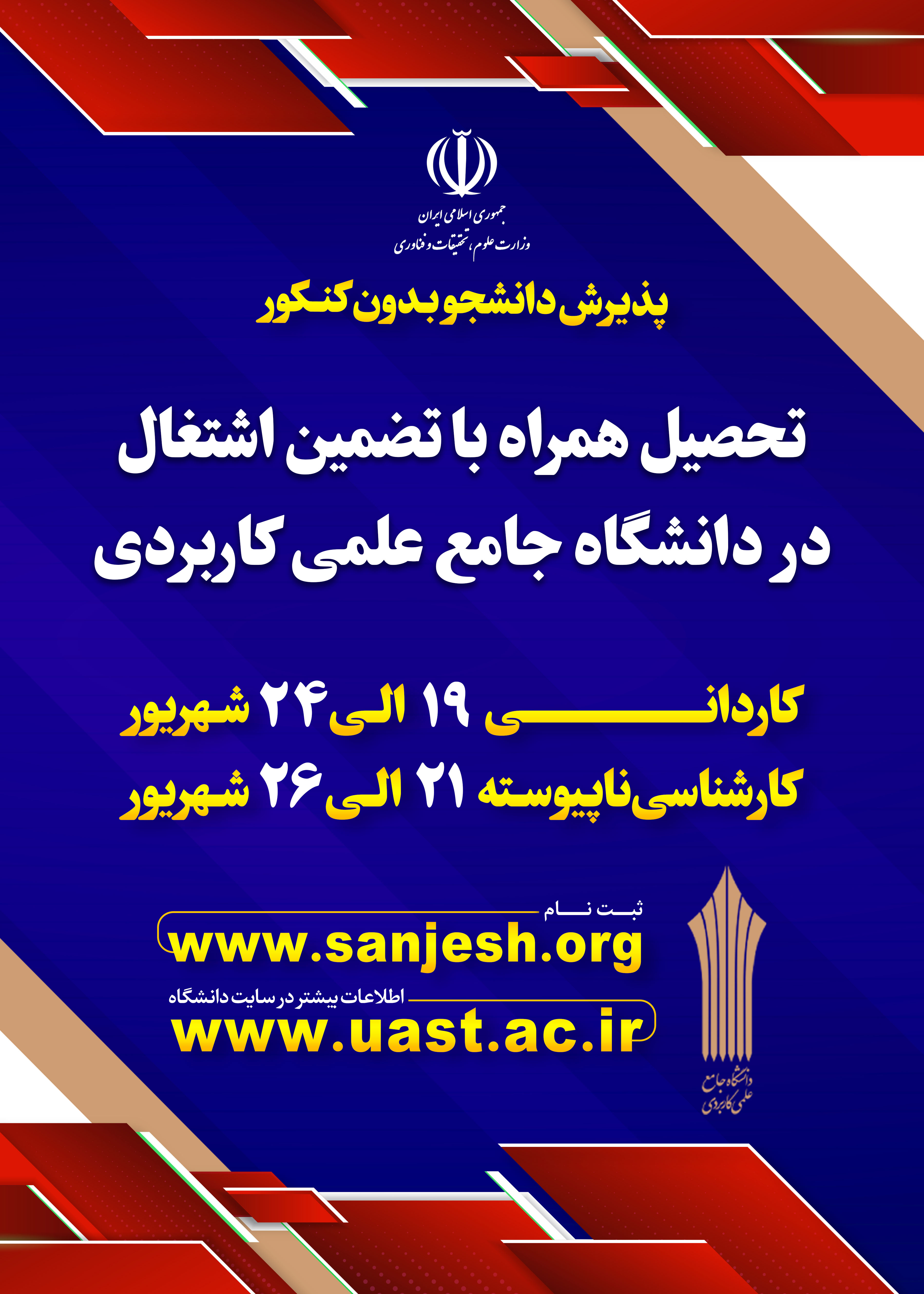 - ثبت نام پذیرش دوره های کاردانی فنی و کاردانی حرفهای (ناپیوسته) نظام آموزش علمی کاربردی